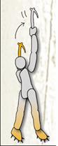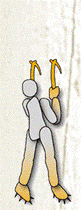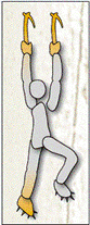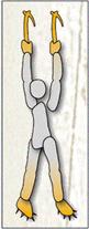 | نحوه کار یکی از روش های فراگیر و توصیه شده به این شرح است .دو نوک نبر یخ را در یک راستا و بالای سر می کوبیم . پاها به نوبت را بالا آورده و در کنار هم قرار می دهیم .یعنی روند صعود بصورت دست دست و پا پا می باشد . بنا به نوع مسیر می توان بر روی پاها نشست ( چمباتمه زد ) و بعد ایستاد. |