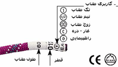 طناب هاي کوهنوردي نيز از اين قاعده مستثني نيستند و براي مشخص شدن کاربرد آنها از علائم خاصي استفاده مي شود .