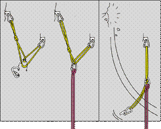 | كارگاهي است كه با قرار گرفتن ميخ و يا ابزار در شكاف سنگ ايجاد مي گردد.اين نکته را به خاطر داشته باشيد که زاويه اي که ابزار در کارگاه با هم مي سازند بايد زير 60 درجه باشد. هر کارگاه ي حداقل بايد داراي دو نقطه باشد تا در صورت در رفتن و يا شکستن يکي از نقطه ها کل حمايت از بين نرود . هنگاميکه از دو ابزار براي ايجاد کار گاه استفاده مي کنيد حتما تسمه اتصال آن دو را يکبار پيچ بدهيد ضمنا بهتر است در اين جالت بر روي بازوي بلندتر تسمه گره اي بزنيد تا در صورت در رفتن ابزار شوک حاصله به کارگاه کمتر شود . |
